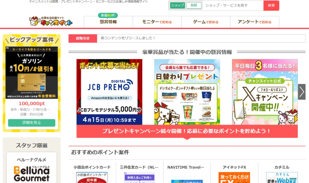 月2000件以上のアンケートを配信しており、会員様には多くのポイント獲得チャンスがあります。